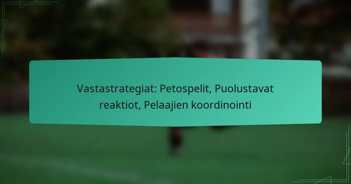 Kilpailutilanteissa käytettävät vastastrategiat sisältävät yhdistelmän harhauttavia peliliikkeitä, puolustuksellisia reaktioita ja pelaajien koordinointia. Harhauttavat peliliikkeet pyrkivät johtamaan vastustajia harhaan ja luomaan edullisia tilanteita, kun taas puolustukselliset reaktiot keskittyvät uhkien ennakoimiseen ja neutraloimiseen. Tehokas pelaajien koordinointi on ratkaisevan tärkeää näiden strategioiden toteuttamisessa, mikä mahdollistaa joukkueiden reagoida yhtenäisesti ja parantaa heidän kokonaissuoritustaan.