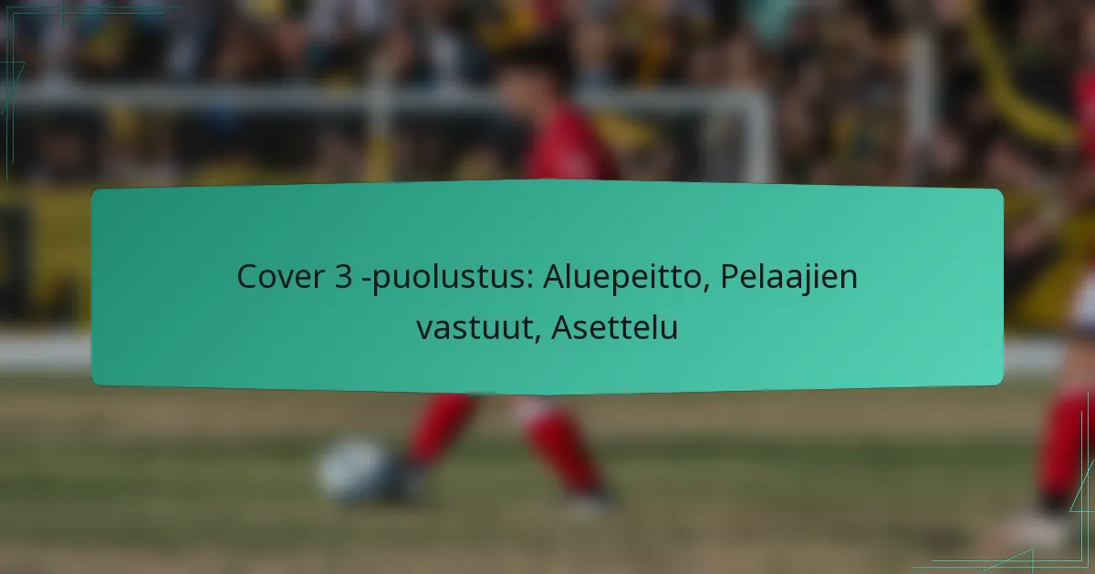 Cover 3 -puolustus on strateginen aluepeittojärjestelmä jalkapallossa, joka jakaa kentän kolmeen syvään alueeseen, joita hallitsevat tyypillisesti safetyt ja kulmapuolustajat. Tämä lähestymistapa parantaa paitsi heittopuolustusta myös mahdollistaa tehokkaan juoksutuen, korostaen joukkueen työtä ja selkeää viestintää pelaajien kesken. Jokaisella puolustajalla on erityiset vastuunsa, varmistaen, että he peittävät määrätyt alueet sen sijaan, että keskittyisivät yksittäisiin vastustajiin, mikä on ratkaisevaa sopeutettaessa erilaisiin hyökkäysmuotoiluihin.