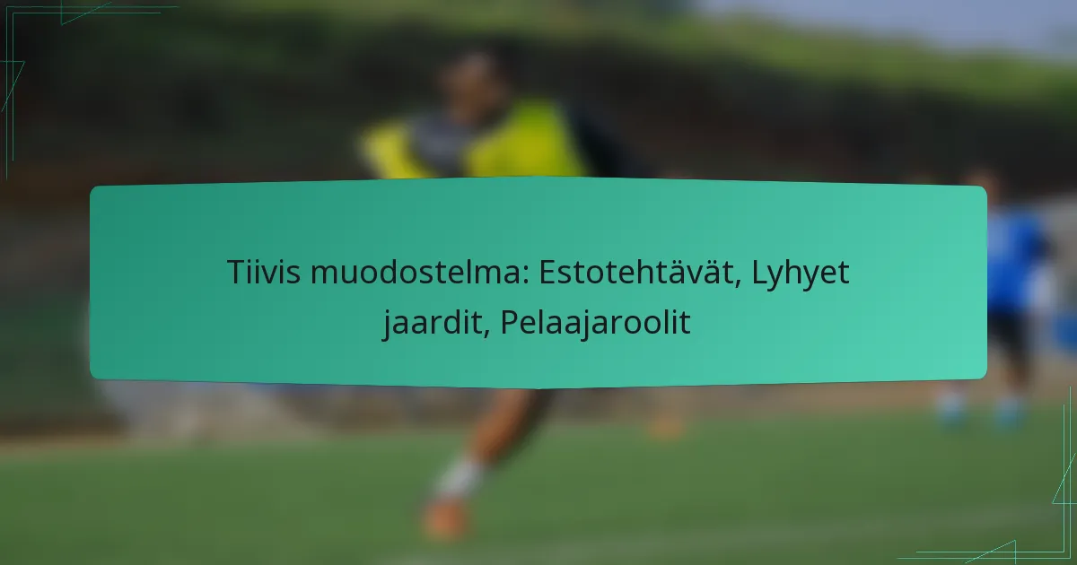 Tight formationille on ominaista pelaajien sijoittaminen lähekkäin, erityisesti hyökkäyslinjan läheisyyteen. Tämä asettelu sisältää usein kaksi tai useampia tight endeja ja yhden tai kaksi juoksijaa, mikä auttaa vahvistamaan blokkauskaaviota. Pääasiallinen tavoite on luoda vahva etuosa, joka voi tehokkaasti työntää puolustavaa linjaa vastaan.